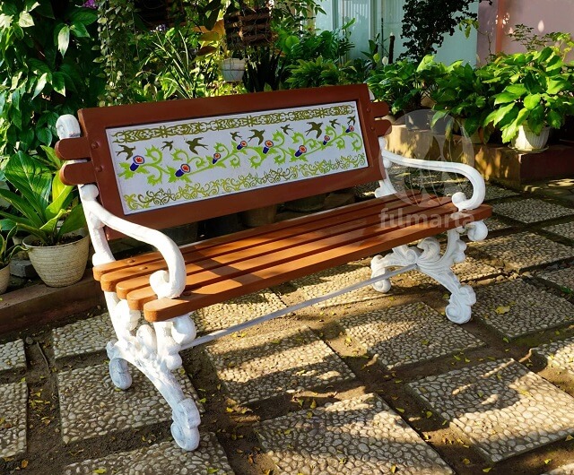 Sedangkan material kayu digunakan untuk membuat bagian dudukan dan bingkai motif sandaran. Jenis kayu yang biasa digunakan untuk membuat kursi taman adalah kayu jati agar lebih awet.